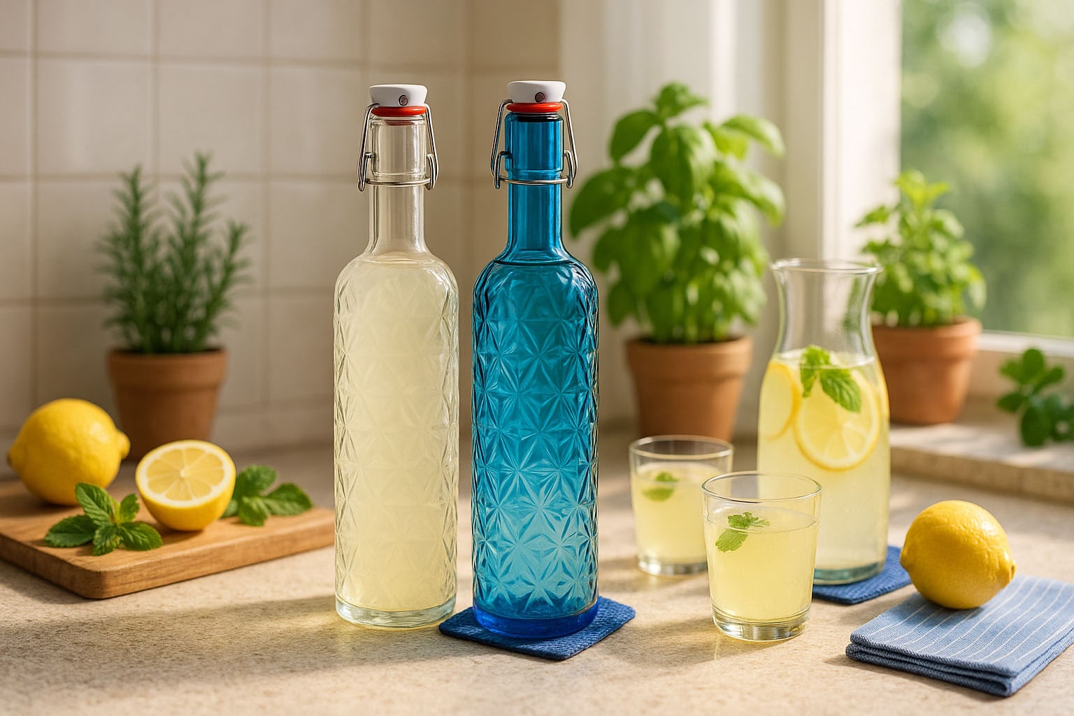 Bormioli Rocco 1.000 ml steklenica 'Oriente', azurno modra, odprtina: sponka za zapiranje