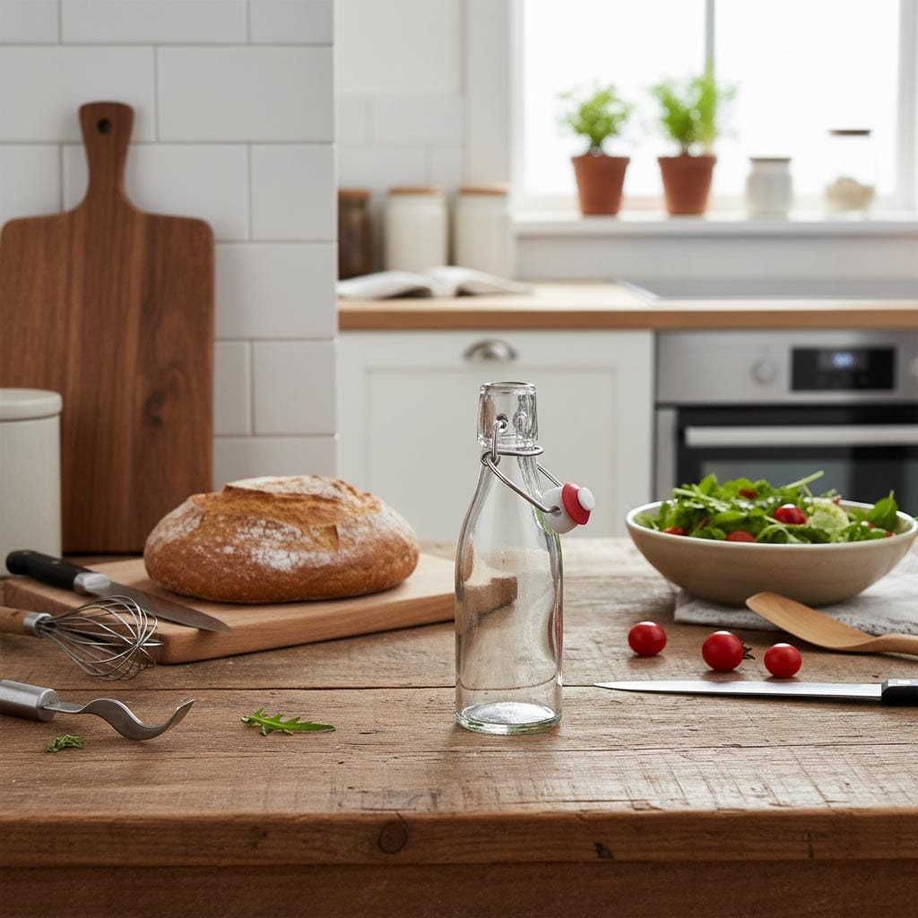 Serija izdelkov „Paul“ podjetja Flaschenland vključuje kakovostne 100 ml steklenice z uporabnim sponnim zamaškom, ki izstopajo po svoji vsestranskosti in robustnosti. Ti stekleni vsebniki so posebej zasnovani za varno shranjevanje in elegantno predstavitev likerjev, žganih pijač in drugih napitkov. Steklenice iz serije „Paul“ so izdelane iz odpornega stekla, ki je odporno proti mrazu, vročini ter primerne za uporabo v mikrovalovni pečici in pečici. Zaradi tega so izjemno vsestranske in jih je mogoče brez težav uporabljati v različnih temperaturnih območjih. Z zmogljivostjo 100 ml so idealno dimenzionirane za majhne količine in zahvaljujoč praktičnemu sponnemu zamašku nudijo zračno tesno in varno zapiranje. Steklenice so primerne za pomivanje v pomivalnem stroju.