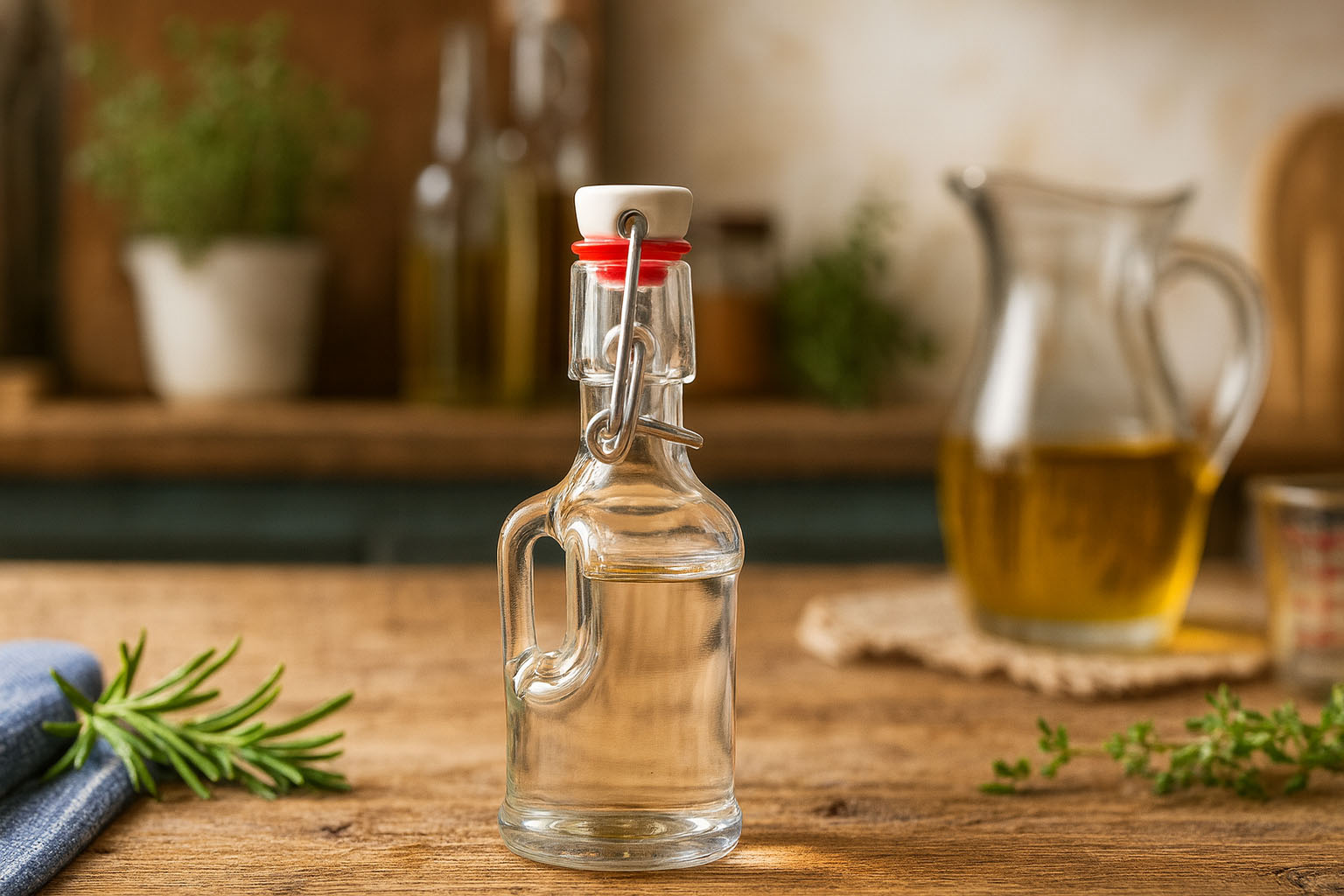Serija „Classica“ združuje tradicionalno oblikovanje z visoko funkcionalnostjo in je popolna izbira za elegantno polnjenje. Proizvedena v Nemčiji, ta značilna steklenica z ročajem navdušuje s svojo kakovostno izdelavo in robustno kakovostjo stekla. Z volumnom od 40 do 500 ml je idealna za polnjenje likerjev, žganih pijač, sokov in sirupov. Njena klasična zasnova daje vsakemu izdelku nostalgičen pridih in jo naredi privlačno izbiro tako za zasebno uporabo kot za izdelke fine hrane.