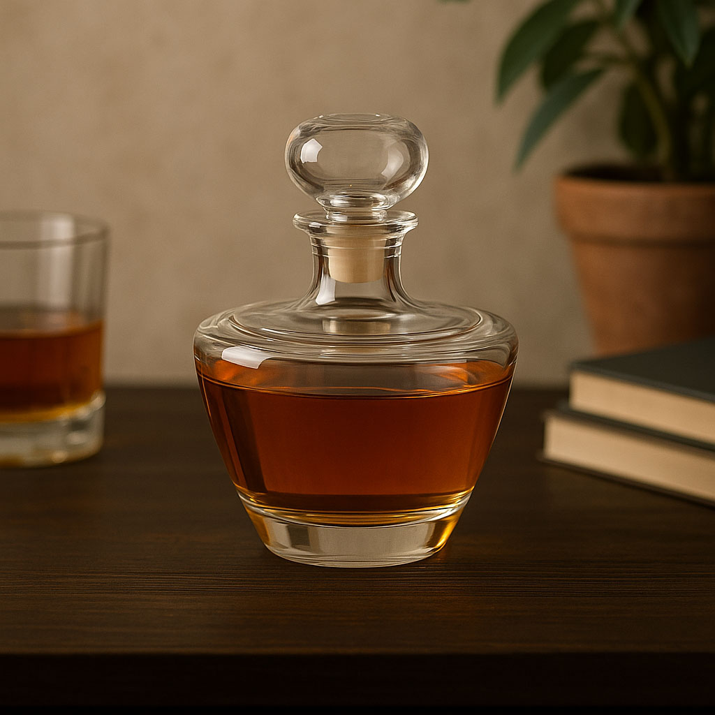 Prozorna steklenica „Homme“ navdušuje s svojo elegantno, ukrivljeno obliko in edinstvenim dizajnom, ki spominja na tekoče valove. Njeno okroglo osnovno telo se zožuje in se proti ustju stopničasto zoži – stilski detajl, ki zagotavlja posebno optično globino. Ta ekskluzivna steklenica je izdelana v EU in združuje vrhunsko obdelavo s časovno estetsko dovršenostjo. Popolna je za izbrane žgane pijače, žganje, likerje in druge posebne napitke, saj poudarja plemenit značaj vsake vsebine. Steklenica „Homme“ ima pluten zamašek, za katerega so v naši ponudbi na voljo ustrezni zamaški.