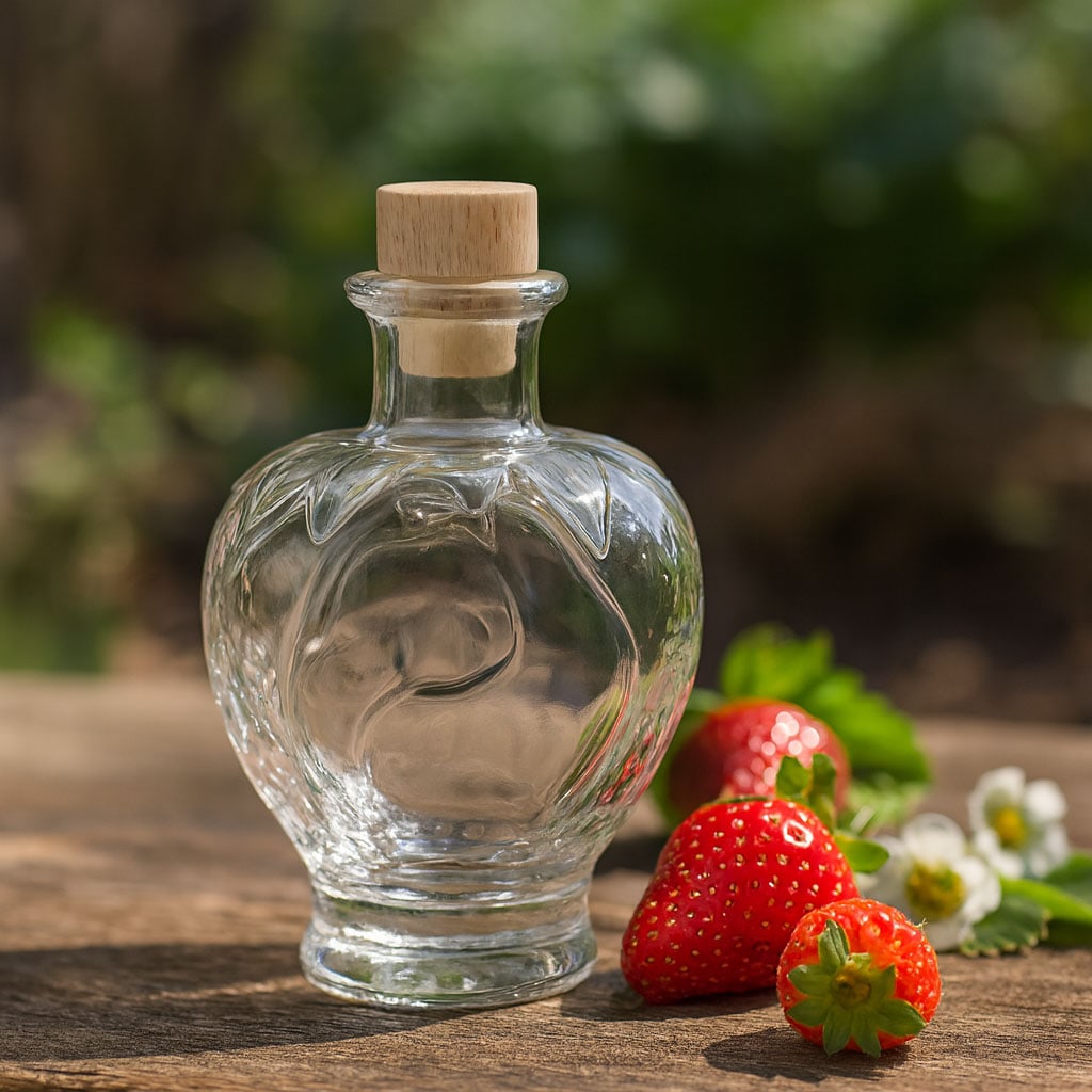 Motivna steklenica „Jagoda“ navdušuje s svojim čarobnim, natančno izdelanim dizajnom in prinaša sladkost ter svežino priljubljenega poletnega sadeža v elegantno stekleno obliko. Izdelana iz kakovostnega prozornega stekla, je kot nalašč za fine žgane pijače, sadne žganje ali izvrstne likerje. Harmonično strukturirana površina spominja na naravno teksturo jagode in steklenico naredi za pravi magnet za poglede. Zaradi zamaška iz plute je vsebina varno in stilsko zaprta.