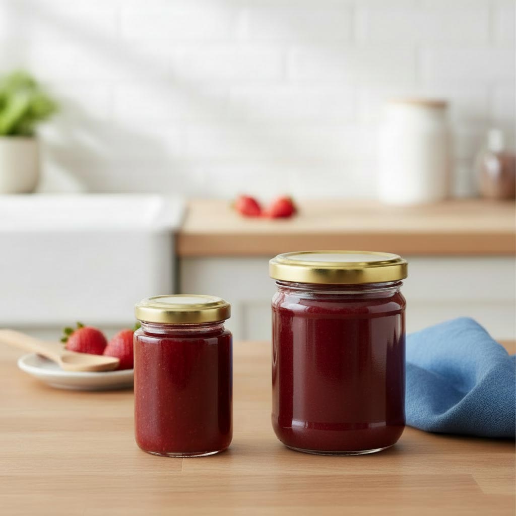 Naš lep okrogli kozarec z 212 ml je primeren za marmelade, džeme, vložnine in druge dobrote.