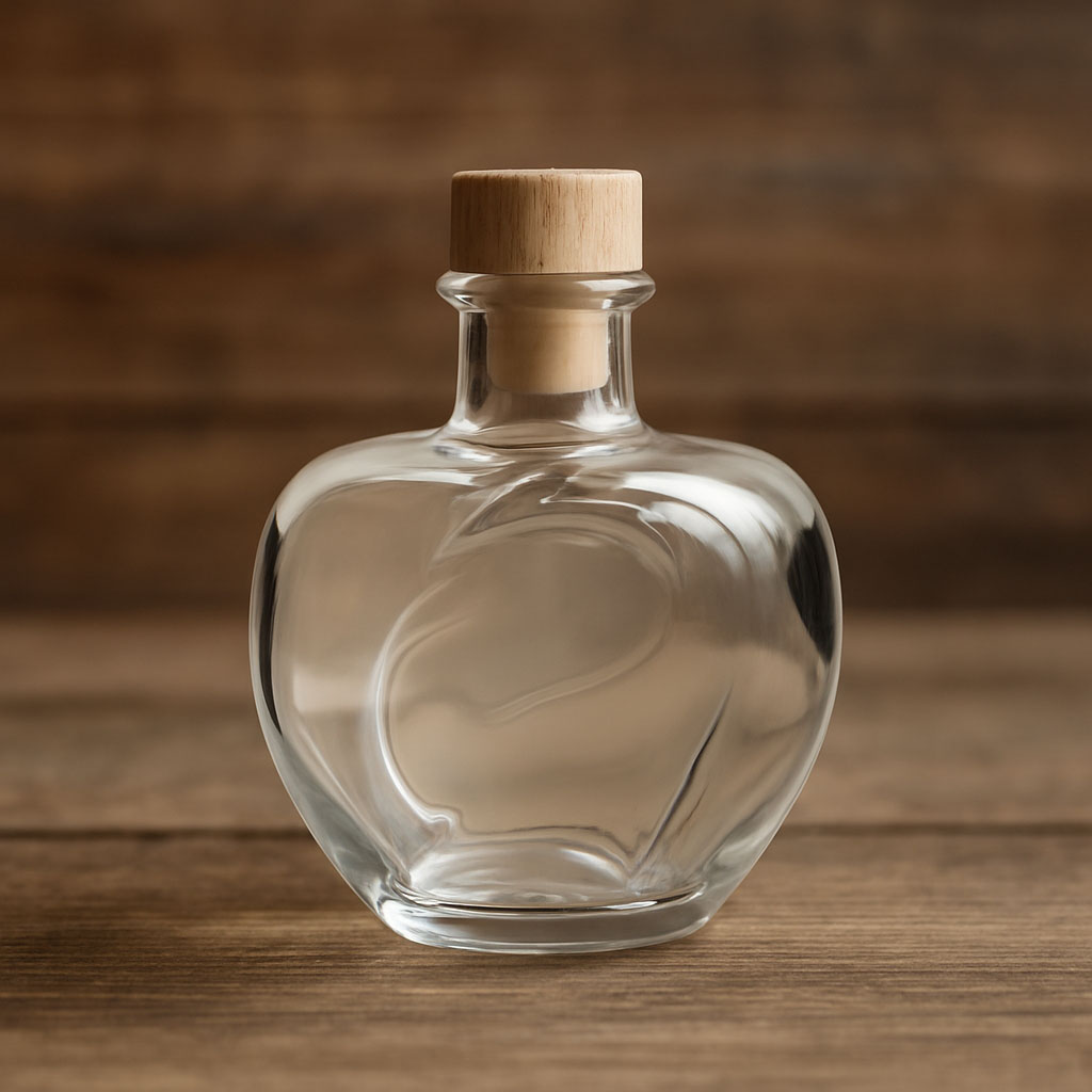 Steklenica z motivom „Jabolko“ navdušuje s svojo edinstveno obliko v obliki jabolka in je popolna izbira za plemenite sadne žganje in likerje. Njena natančna zasnova iz visokokakovostnega prozornega stekla poudarja naravni značaj vsebine in jo naredi za pravi vizualni poudarek. Korkasti zamašek poskrbi za stilno in varno zapiranje, medtem ko harmonična oblika poudarja vrednost izdelka.