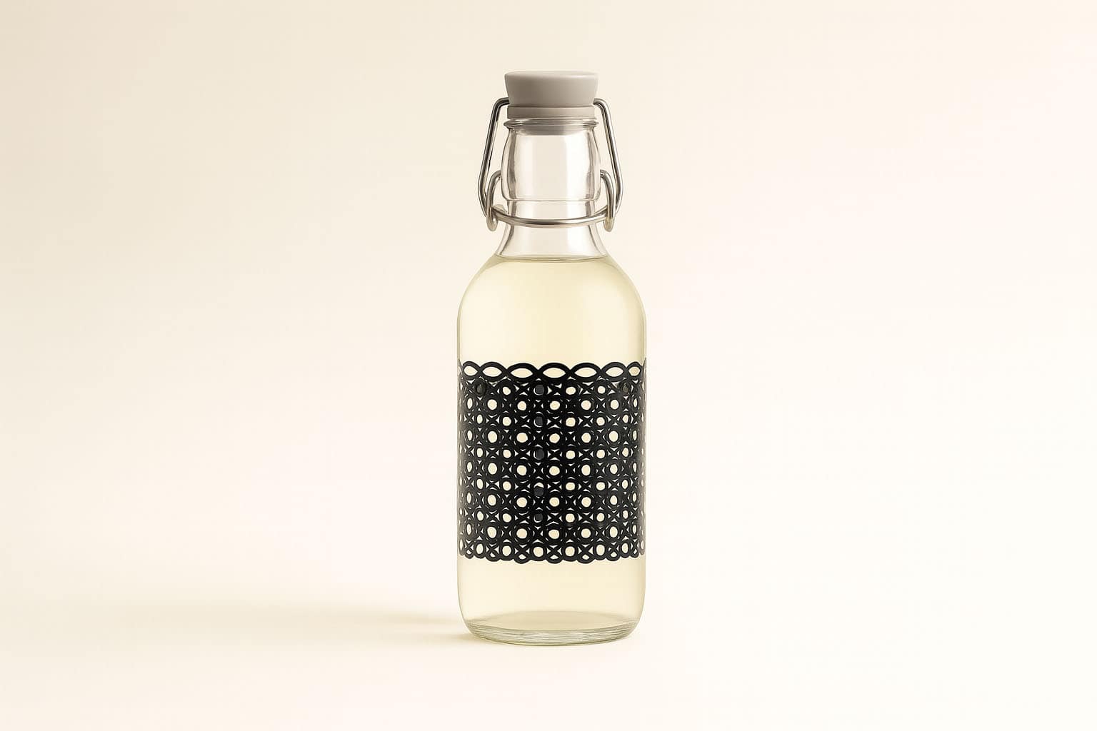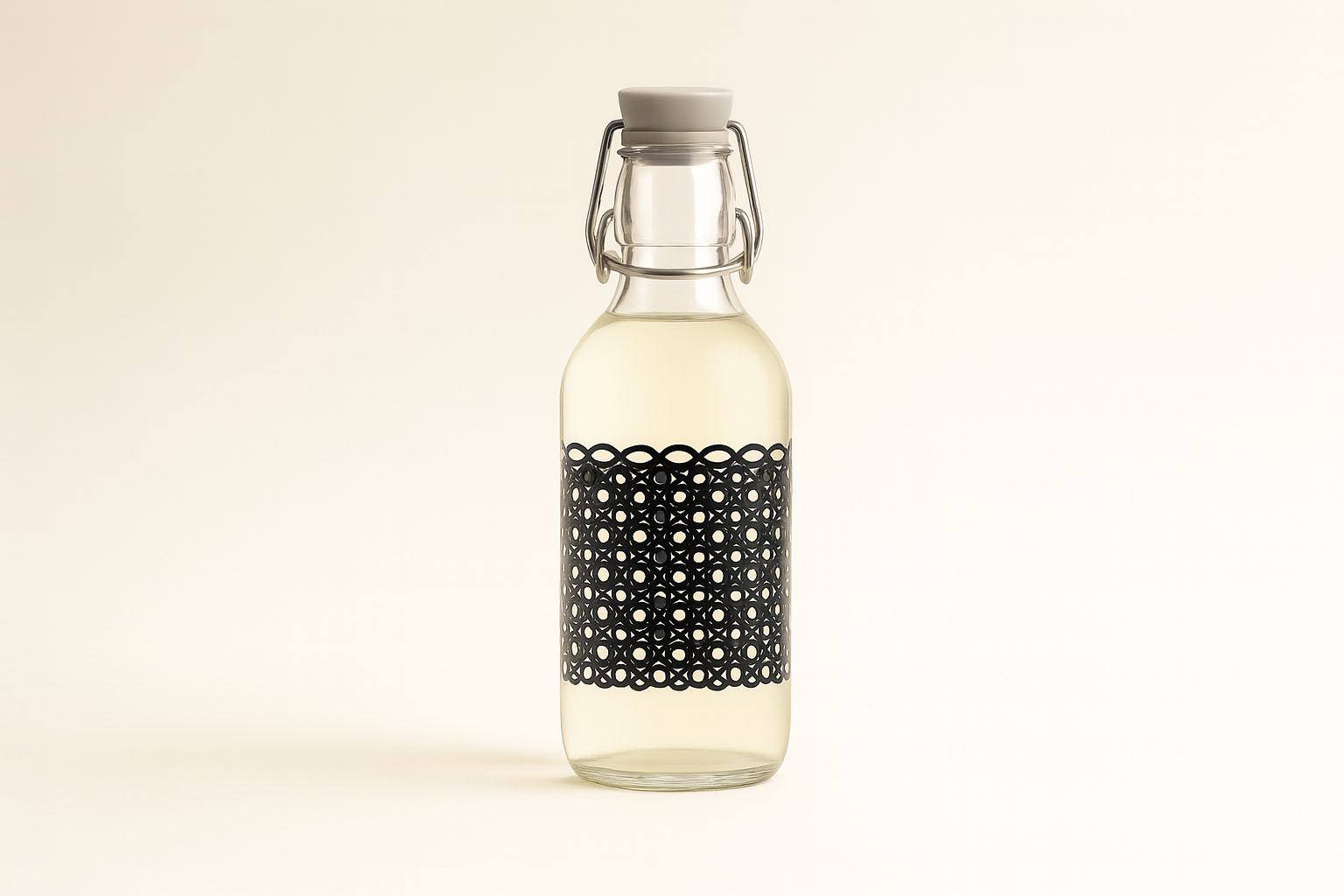 Bormioli Rocco 500 ml steklenica 'Emilia', motiv: Circola nero, odprtina: s sponko