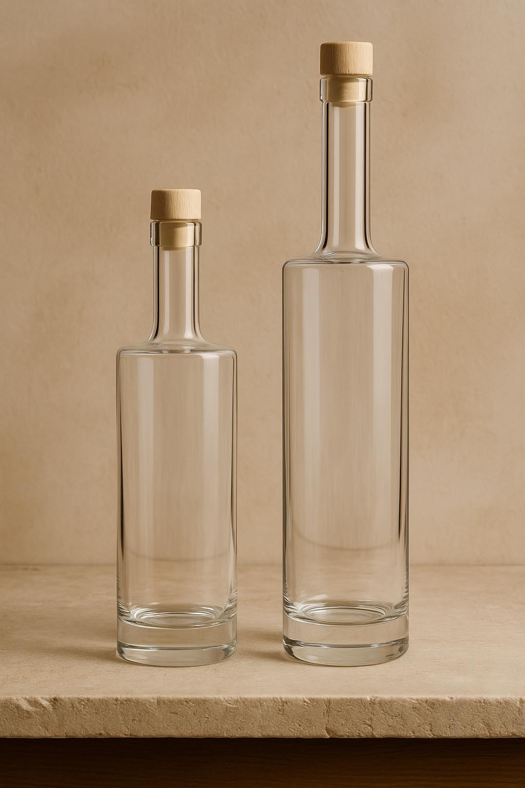 Serija "Titano" združuje močno prisotnost z rafinirano preprostostjo in postavlja nove standarde v svetu kakovostnih steklenih embalaž. Ta elegantna cilindrična steklenica iz prozornega stekla navdušuje z masivnim steklenim dnom, ki ne zagotavlja le stabilnosti, temveč tudi optično globino in ekskluzivnost. Na voljo v velikostih 500 in 700 ml, je "Titano" popolna za kakovostne žgane pijače, izbrane likerje in značilne destilate. Korkni vrat poskrbi za klasično in varno zapiranje – ustrezni zamaški so na voljo v naši ponudbi. S svojo robustno eleganco in brezčasno estetiko je "Titano" idealna izbira za zahtevne blagovne znamke, ki cenijo kakovost in izraznost.