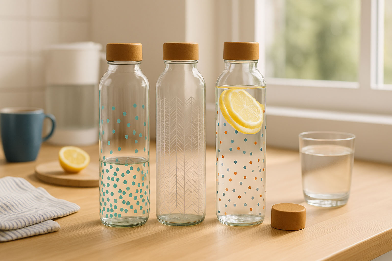 CARRY steklenica združuje sodoben dizajn s trajnostjo in funkcionalnostjo. Je idealna steklenica za pitje za okoljsko ozaveščene ljudi. Izdelana iz kakovostnega stekla, navdušuje s svojo dolgo obstojnostjo in vitko, cilindrično obliko, ki prijetno sede v roko. Praktičen navojni zgornji del zagotavlja varno zapiranje – ustrezni pokrovčki so na voljo v naši ponudbi. Z ustvarjalnimi motivi, kot so pisane pike, tekoče vodne linije in geometrijske strukture, CARRY steklenica postavlja stilne poudarke in pitje na poti spremeni v pravo izjavo. Popolna za vse, ki želijo v svojem vsakdanu združiti estetiko in trajnost.